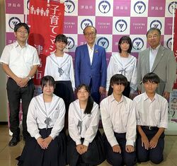 愛知県立津島東高等学校の6名の皆さんが、愛知県合同管弦楽団の一員として全国高等学校総合文化祭に出場された報告に来庁されました。今後のご活躍と健闘を祈ります。